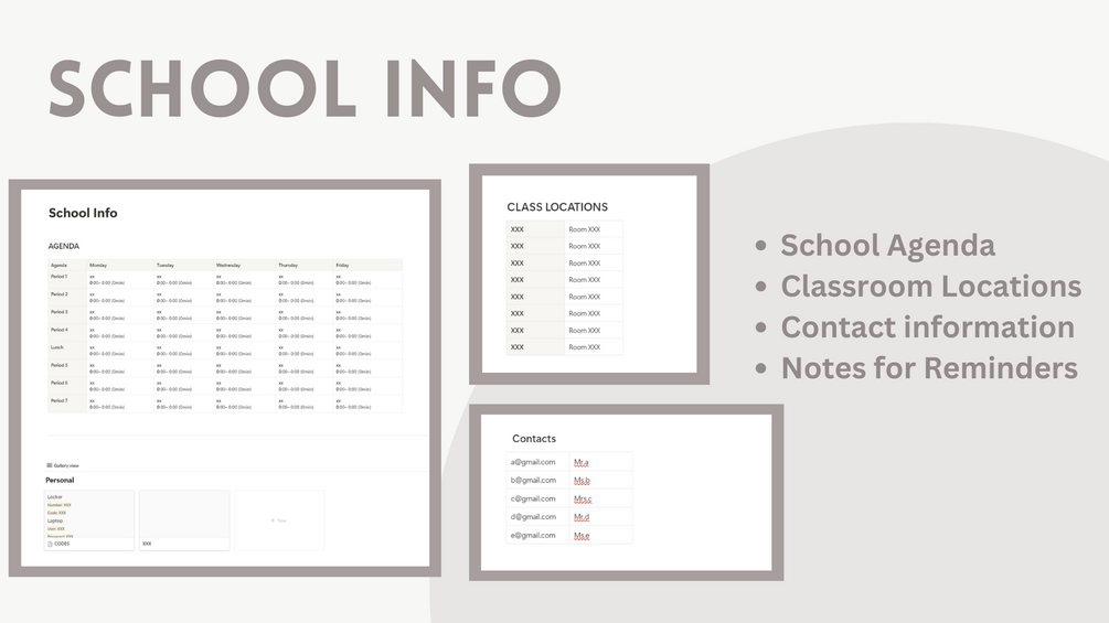 • 📇 Contact Info: Store contact details of your teachers, classmates, and school administration.